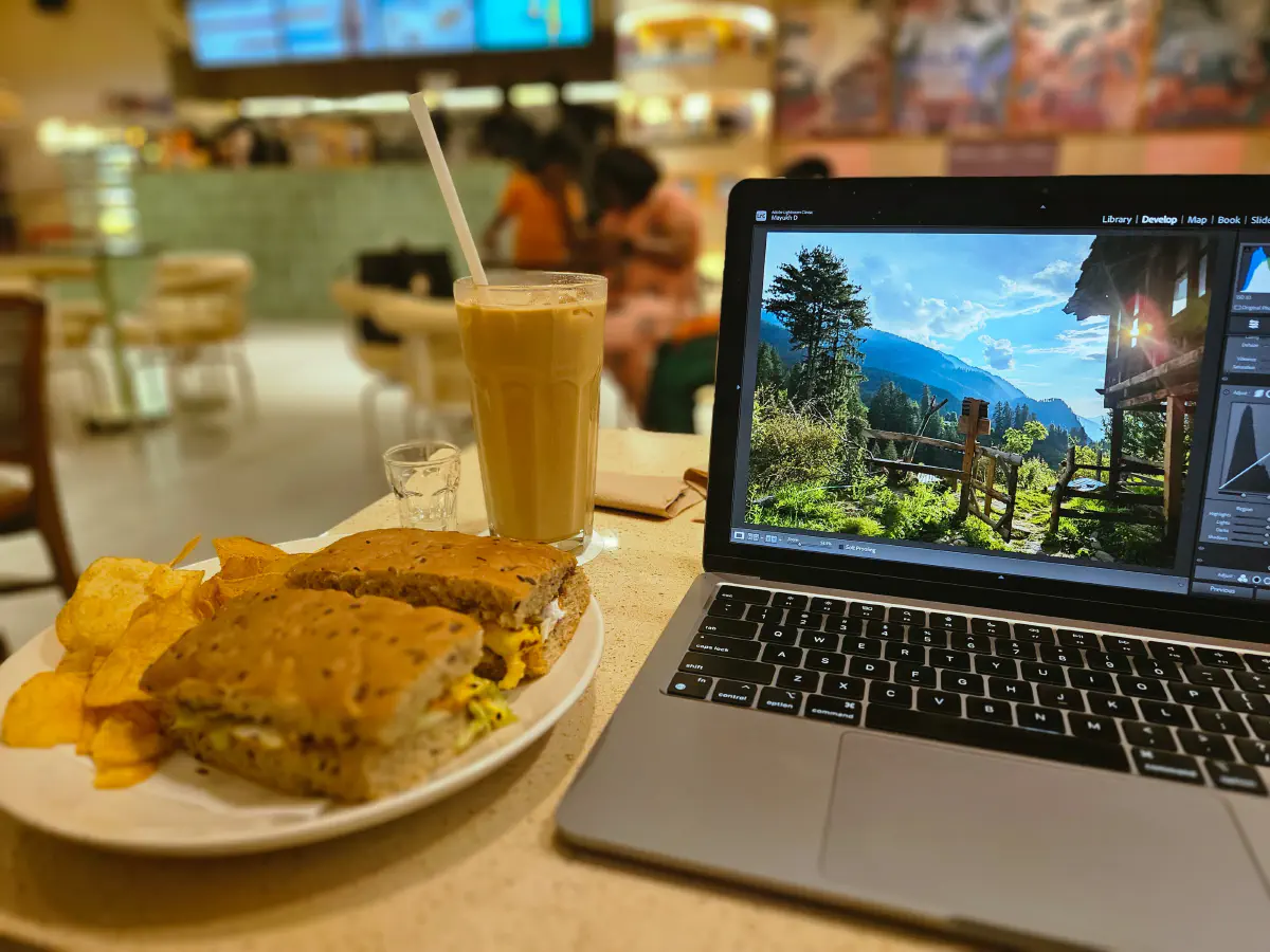 While I was halfway through editing my photo collection, someone hurriedly entered the cafe, ordered their favorite drink, and settled in with a book. What caught my eye was the line on her t-shirt: ‘Mountains let us climb them, we don’t climb mountains.’ I was moved by those words. I went up to her and complimented her t-shirt. She mentioned she bought it in Kasol in Himachal Pradesh.